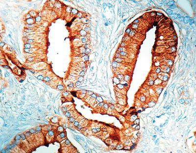 PSAP^ Clone number PASE/4LJ, This antibody is specific to human prostatic acid phosphatase. It reacts with the glandular epithelium of normal and hyperplastic prostate and with prostate adenocarcinoma. It does not show any cross-reactivity with PSAP from dog, rabbit and rat. .