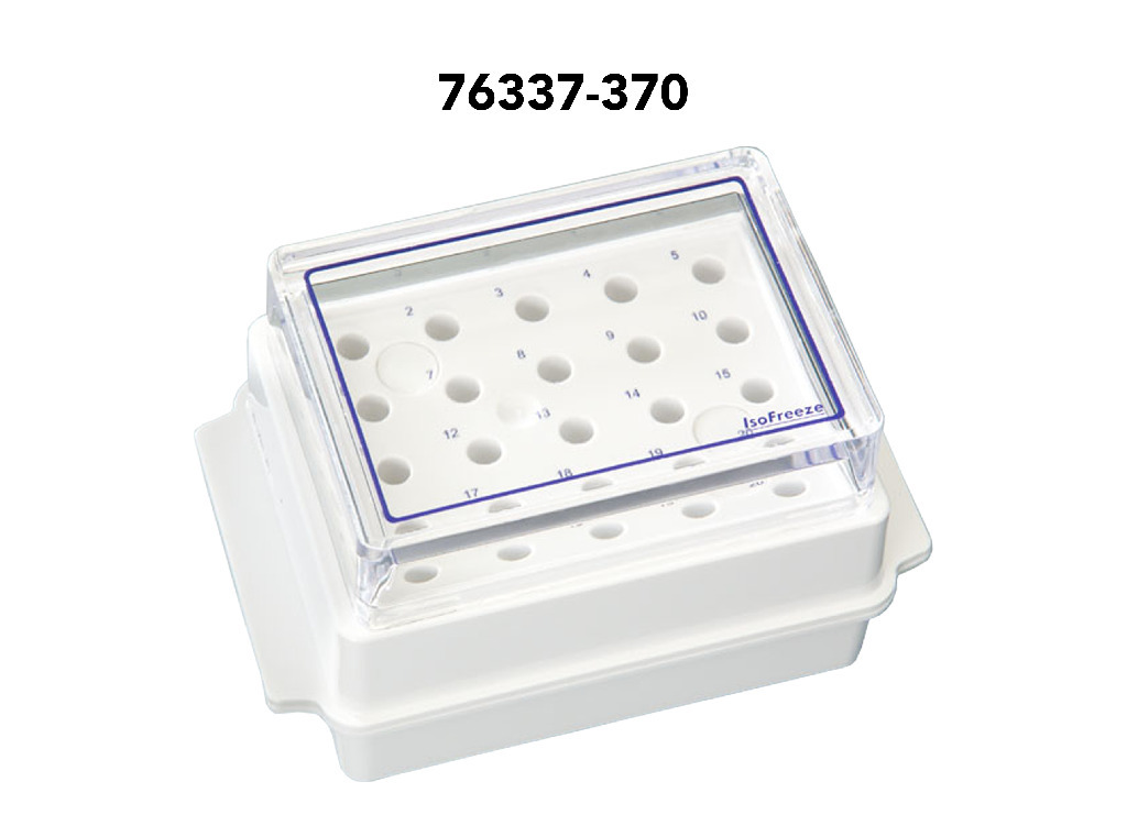 These reversible benchtop chillers hold either 0.5 or 0.65 ml tubes on one side and 1.5 to 2.0 ml tubes on the other. Racks are available in two temperature ranges and can be frozen overnight for maximum duration. • Constructed of polycarbonate • Can maintain cold temperatures for up to four hours • Non-toxic gel fill Available in blue (Cat. No.: 76337-372) or white (Cat. No.: 76337-370), with dimensions of 172×104×108 mm, these chillers hold 20 tubes each of 1.5/2.0 ml and 0.5 ml sizes.