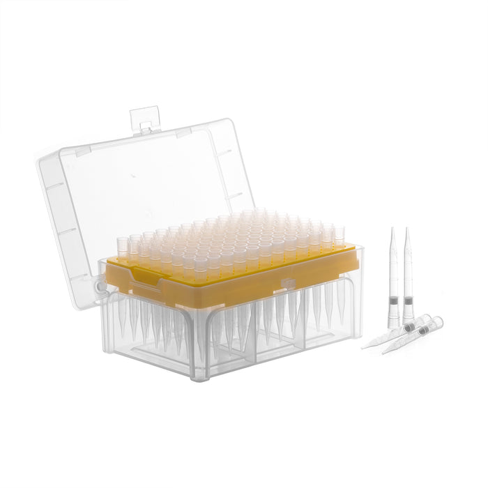 • 300µl Racked Filter Tips • Sterile • Pack of 96 filter tips • This pack of 96 racked filter tips has a volume range of 50-300 µl and is graduated for easy measurement. The hydrophobic polyethylene filter prevents sample and pipette contamination due to aerosol transfer, ensuring a sterile working environment.