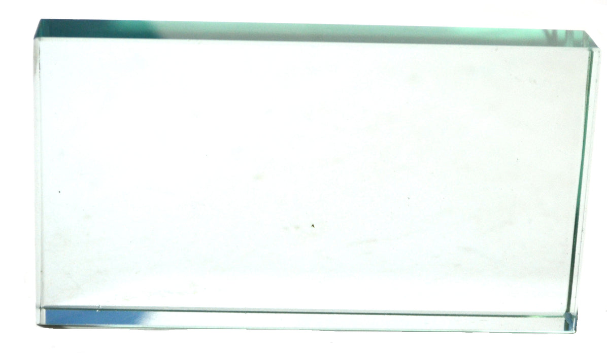• Glass Rectangular Block • 125mm x 65mm x 18mm in size • This solid glass block, also known as an index of refraction plate, is ideal for studying the properties of light (optics) in a kinesthetic and visually effective manner.
