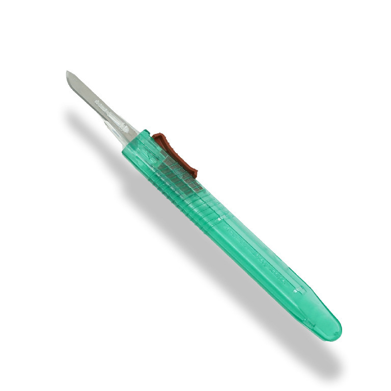 Here is the corrected text: Stainless steel razor-sharp cutting edge for superior cutting and clean incisions. Sterile. 10 per pack. • Wrapped in individual peel pouch • Sterilized by gamma radiation • Top-activated retractable safety scalpel Certifications: ISO, GMP, Safety scalpels Available options: Cat. No.: 76457-504, Blade no.: #11 Cat. No.: 76457-506, Blade no.: #12 Cat. No.: 76457-502, Blade no.: #10 Cat. No.: 76457-508, Blade no.: #15 Cat. No.: 76457-510, Blade no.: #20