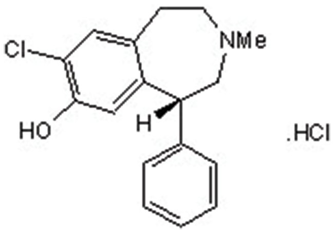 Standard selective D1-like antagonist; also 5-HT2C agonist and Kir3 channel blocker