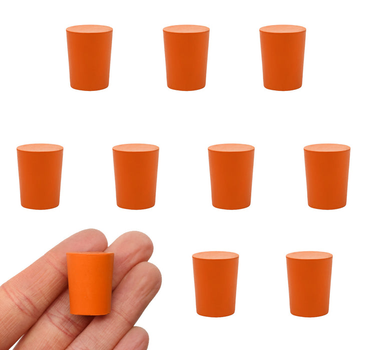 Solid Rubber Stoppers, Solid orange rubber stoppers for use in science laboratories., Each
