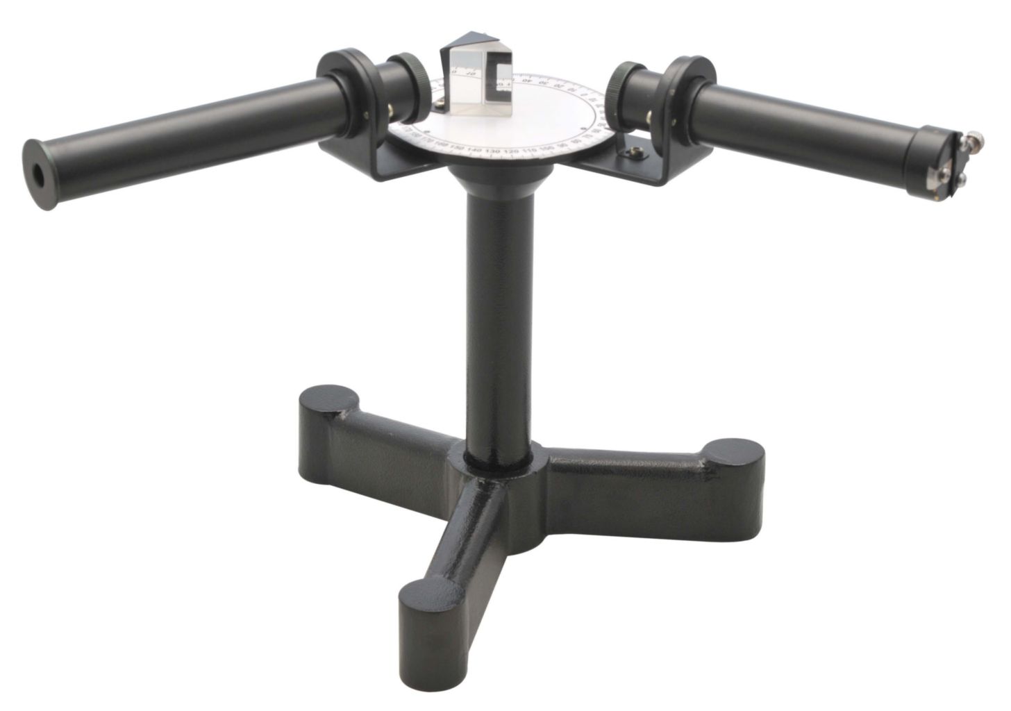 Here is the corrected text: This basic spectrometer features a sturdy metal base, an adjustable collimator tube, a telescope, and a prism stand. It comes with a 25mm x 25mm glass prism included. The instrument stands approximately 10 inches tall and 15 inches wide at its widest adjustment. This excellent tool is ideal for optical studies and light physics. A spectrometer is an optical instrument used to determine the wavelength of light as well as the index of refraction of solids and liquids. The supplied accessories include one prism holder, a 25mm x 25mm glass prism, an adjustable collimator tube, and a telescope. The spectrometer measures approximately 10 inches tall and 15 inches wide at its widest setting. Both the collimator tube and the telescope measure approximately 6 inches long. The base of the prism holder measures 3.75 inches in diameter.