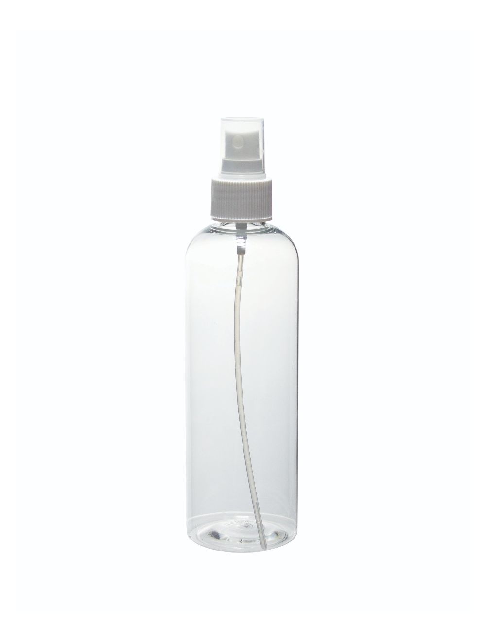 Spray bottles are made from clear polyethylene terephthalate (PET) and include a white spray nozzle with clear cap to keep nozzle clean and leak-proof. PET is lightweight, chemically resistant and has excellent durability. Available in 8 oz and 16 oz capacity.