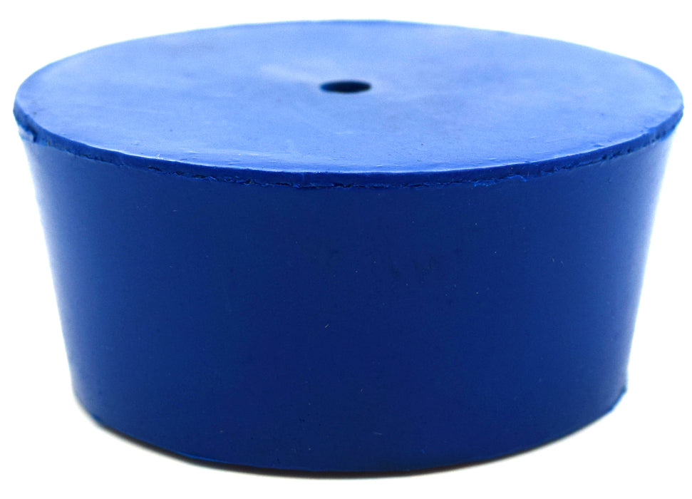 This pack of ten #11 stoppers is made from long-lasting neoprene rubber and features a blue color. Each stopper has one hole measuring 5mm in diameter. Manufactured according to sizes recommended by ASTM standards, each stopper measures 25mm in length, with a base diameter of 48mm and a top diameter of 56mm. The neoprene rubber construction makes them suitable for use with petroleum products, minerals, oils, and fats, as well as most inorganic acids and bases. They are resistant to temperatures ranging from -40°C to 130°C.
