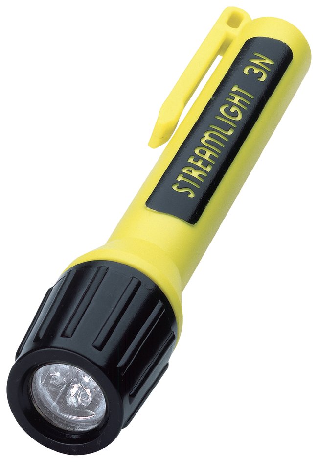Features three super-bright, 100,000-hour LEDs. Provides up to 120 hours of run time.Shock-resistant, engineering-grade polymer caseUnbreakable polycarbonate lensPush-button switchNonconductive and corrosion-proofSpecificationsRun Time: Up to 120 hours on three “N”alkaline batteriesLength: 5.25 in. (13.4cm)Weight 2.1 oz.Color: YellowCertificationsUL listed, Class l, Div l, for use in hazardous locations.