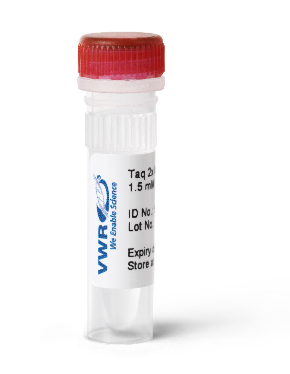 Concentration: 2X, VWR® Taq DNA Polymerase Master Mix is a ready to use 1.1X or 2X reaction mix. Simply add primers, template and water to carry out primer extensions and other molecular biology applications., Taq DNA Polymerase master mixes are a good alternative to Taq DNA Polymerase. The Taq DNA Polymerase master mixes offer reduced set-up time and eliminate the risk of contamination of reaction components. Fewer handling steps lead to better reproducibility, which makes master mixes suitable for standard PCR applications, screening and high-throughput testing. Long term storage at -20 °C. Product expiry at -20 °C is stated on the label. Optional: Store at 4 °C for up to 6 months. Available as 1.1X or 2X master mixes with a final MgCl2 concentration of either 1.5 mM or 2 mM., 02_BulletPoint: All-in-one master mix for great convenience | Minimal optimization | Fewer pipetting steps | Increased reproducibility | High product yield | dUTP incorporation possible | Processes up to 5 kb | Leaves a 3'dA overhang, 13_Caution: For Research Use Only. Not for use in diagnostic procedures., Taq DNA Polymerase 2X Master Mix (1.5 mM MgCl₂), Cat. No.: 76620-456, Units: EA, No. of reactions: 500 (of 50 μl), Concentration: 2X, VWR® Taq DNA Polymerase Master Mix is a ready to use 1.1X or 2X reaction mix. Simply add primers, template and water to carry out primer extensions and other molecular biology applications., Taq DNA Polymerase master mixes are a good alternative to Taq DNA Polymerase. The Taq DNA Polymerase master mixes offer reduced set-up time and eliminate the risk of contamination of reaction components. Fewer handling steps lead to better reproducibility, which makes master mixes suitable for standard PCR applications, screening and high-throughput testing. Long term storage at -20 °C. Product expiry at -20 °C is stated on the label. Optional: Store at 4 °C for up to 6 months. Available as 1.1X or 2X master mixes with a final MgCl2 concentration of either 1.5 mM or 2 mM., 02_BulletPoint: All-in-one master mix for great convenience | Minimal optimization | Fewer pipetting steps | Increased reproducibility | High product yield | dUTP incorporation possible | Processes up to 5 kb | Leaves a 3'dA overhang, 13_Caution: For Research Use Only. Not for use in diagnostic procedures., Taq DNA Polymerase 2X Master Mix (2 mM MgCl₂), Cat. No.: 76620-460, Units: EA, No. of reactions: 500 (of 50 μl), Concentration: 2X, VWR® Taq DNA Polymerase Master Mix is a ready to use 1.1X or 2X reaction mix. Simply add primers, template and water to carry out primer extensions and other molecular biology applications., Taq DNA Polymerase master mixes are a good alternative to Taq DNA Polymerase. The Taq DNA Polymerase master mixes offer reduced set-up time and eliminate the risk of contamination of reaction components. Fewer handling steps lead to better reproducibility, which makes master mixes suitable for standard PCR applications, screening and high-throughput testing. Long term storage at -20 °C. Product expiry at -20 °C is stated on the label. Optional: Store at 4 °C for up to 6 months. Available as 1.1X or 2X master mixes with a final MgCl2 concentration of either 1.5 mM or 2 mM., 02_BulletPoint: All-in-one master mix for great convenience | Minimal optimization | Fewer pipetting steps | Increased reproducibility | High product yield | dUTP incorporation possible | Processes up to 5 kb | Leaves a 3'dA overhang, 13_Caution: For Research Use Only. Not for use in diagnostic procedures., Taq DNA Polymerase 2X Master Mix (1.5 mM MgCl₂), Cat. No.: 76620-458, Units: EA, No. of reactions: 2500× 50 μl, Concentration: 2X, VWR® Taq DNA Polymerase Master Mix is a ready to use 1.1X or 2X reaction mix. Simply add primers, template and water to carry out primer extensions and other molecular biology applications., Taq DNA Polymerase master mixes are a good alternative to Taq DNA Polymerase. The Taq DNA Polymerase master mixes offer reduced set-up time and eliminate the risk of contamination of reaction components. Fewer handling steps lead to better reproducibility, which makes master mixes suitable for standard PCR applications, screening and high-throughput testing. Long term storage at -20 °C. Product expiry at -20 °C is stated on the label. Optional: Store at 4 °C for up to 6 months. Available as 1.1X or 2X master mixes with a final MgCl2 concentration of either 1.5 mM or 2 mM., 02_BulletPoint: All-in-one master mix for great convenience | Minimal optimization | Fewer pipetting steps | Increased reproducibility | High product yield | dUTP incorporation possible | Processes up to 5 kb | Leaves a 3'dA overhang, 13_Caution: For Research Use Only. Not for use in diagnostic procedures., Taq DNA Polymerase 2X Master Mix (2 mM MgCl₂), Cat. No.: 76620-462, Units: EA, No. of reactions: 2500× 50 μl, Concentration: 1.1X, VWR® Taq DNA Polymerase Master Mix is a ready to use 1.1X or 2X reaction mix. Simply add primers, template and water to carry out primer extensions and other molecular biology applications., Taq DNA Polymerase master mixes are a good alternative to Taq DNA Polymerase. The Taq DNA Polymerase master mixes offer reduced set-up time and eliminate the risk of contamination of reaction components. Fewer handling steps lead to better reproducibility, which makes master mixes suitable for standard PCR applications, screening and high-throughput testing. Long term storage at -20 °C. Product expiry at -20 °C is stated on the label. Optional: Store at 4 °C for up to 6 months. Available as 1.1X or 2X master mixes with a final MgCl2 concentration of either 1.5 mM or 2 mM., 02_BulletPoint: All-in-one master mix for great convenience | Minimal optimization | Fewer pipetting steps | Increased reproducibility | High product yield | dUTP incorporation possible | Processes up to 5 kb | Leaves a 3'dA overhang, 13_Caution: For Research Use Only. Not for use in diagnostic procedures., Taq DNA Polymerase 