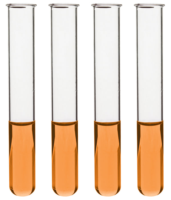 Set of 100 test tubes made of high quality Borosilicate 3.3 Glass. 7ml capacity. Tubes feature uniform, 1mm walls and beaded rims.Each tube measures 4" (100mm) tall, with an outer diameter of 0.5" (12mm). Inner diameter measures 11mm. Accommodates stoppers with a bottom diameter of 9-10mm & top diameter of 13-15mm. (Compatible stoppers can be found by searching ASIN: B07CZ4FPZ8 and ASIN: B013TMXT7Q).Autoclavable, with superior chemical durability. Low temperature gradient- can withstand direct flame, high temperatures & thermal shocks. Eisco Labs Borosilicate glass has the following heat tolerances: Strain Point -515°C | Annealing Point 565°C | Softening Point 820°C.Eisco Labs proudly manufactures its own products using state-of-the-art equipment, and following the highest standards of quality control.Each product is carefully designed by a team of laboratory professionals and experienced engineers with quality and durability in mind. They are manufactured with only the highest grade, raw materials and according to international quality standards to ensure that they can withstand use in even the toughest laboratory environments.