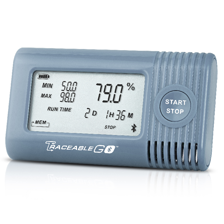 Resolution: T: 0.1 °C | RH: 0.1%, Data Memory: 65000, A Bluetooth device is the ideal transit partner for monitoring materials between destinations. Safely transport reagents, clinical samples, vaccines, pharmaceuticals, and food items to any location., With the TraceableGO™ mobile app, view if an alarm was triggered, and generate an instant data report. Device stores up to 90 alarm events, records readings once every 5 minutes by default, or the user may adjust the reading interval between one minute to once every 12 hours. Logging duration is 227 days (7.5 months). TraceableGO™ Bluetooth devices are pre-programmed with alarm values., 04_BodyText: Bluetooth connection works with any Bluetooth-enabled devices. Once TraceableGO™ arrives, enable the Bluetooth transfer to a smartphone by opening the TraceableGO™ app (available on iTunes or Google Play) and pairing the device to a smartphone. Download the recorded data once the device is enabled to send a report directly from a mobile device., 05_BodyText: Bluetooth hygrometer datalogger fills in the unknowns between destinations. Critical information(humidity and temperature, trip duration, MIN/MAX, battery level and alarms) all displayed on LCD at all times., 09_BodyTextAccessories: Data can be downloaded and devices reconfigured using the free TraceableGO™ app. Optional service allows an unlimited amount of stored data from an unlimited number of TraceableGO™ devices on a TraceableLIVE® account for $30/month., 02_BulletPoint: Press START to begin trip monitoring | Place device inside a small cooler or even an entire pallet of material | Once the trip has ended, double-press START/STOP to enable Bluetooth and export data using the TraceableGO™ mobile app | TraceableGO™ mobile app immediately identifies if the contents experienced conditions outside user-defined parameters | Compatible with TraceableGO or TraceableLIVE mobile apps | Simple, single button use | Dimensions:3.5×2×0.79", 08_Certifications: CE marked. RoHS compliant. Traceable to NIST which assures accuracy from an ISO/IEC 17025:2017 (1750.01) calibration laboratory accredited by A2LA. It indicates traceability of measurements to the SI units through NIST or other recognized national measurement institutes (NMI) that are signatories to the CIPM mutual recognition agreement., VWR® TraceableGO™ bluetooth datalogging temperature and humidity meter, Weight: 165 g, Cat. No.: 76214-378, Accuracy: T: ±0.4 °C (−10...70 °C), otherwise ±0.5 °C | RH: ±3% (25 - 75%), otherwise ±5%, Range: T: −20...70 °C (−4...158 °F) | RH: 0 - 95%, A Bluetooth device is the ideal transit partner for monitoring materials between destinations. Safely transport reagents, clinical samples, vaccines, pharmaceuticals, and food items to any location., With the TraceableGO™ mobile app, view if an alarm was triggered, and generate an instant data report. Device stores up to 90 alarm events, records readings once every 5 minutes by default, or the user may adjust the reading interval between one minute to once every 12 hours. Logging duration is 227 days (7.5 months). TraceableGO™ Bluetooth devices are pre-programmed with alarm values., 04_BodyText: Bluetooth connection works with any Bluetooth-enabled devices. Once TraceableGO™ arrives, enable the Bluetooth transfer to a smartphone by opening the TraceableGO™ app (available on iTunes or Google Play) and pairing the device to a smartphone. Download the recorded data once the device is enabled to send a report directly from a mobile device., 05_BodyText: Bluetooth hygrometer datalogger fills in the unknowns between destinations. Critical information(humidity and temperature, trip duration, MIN/MAX, battery level and alarms) all displayed on LCD at all times., 09_BodyTextAccessories: Data can be downloaded and devices reconfigured using the free TraceableGO™ app. Optional service allows an unlimited amount of stored data from an unlimited number of TraceableGO™ devices on a TraceableLIVE® account for $30/month., 02_BulletPoint: Press START to begin trip monitoring | Place device inside a small cooler or even an entire pallet of material | Once the trip has ended, double-press START/STOP to enable Bluetooth and export data using the TraceableGO™ mobile app | TraceableGO™ mobile app immediately identifies if the contents experienced conditions outside user-defined parameters | Compatible with TraceableGO or TraceableLIVE mobile apps | Simple, single button use | Dimensions:3.5×2×0.79", 08_Certifications: CE marked. RoHS compliant. Traceable to NIST which assures accuracy from an ISO/IEC 17025:2017 (1750.01) calibration laboratory accredited by A2LA. It indicates traceability of measurements to the SI units through NIST or other recognized national measurement institutes (NMI) that are signatories to the CIPM mutual recognition agreement.