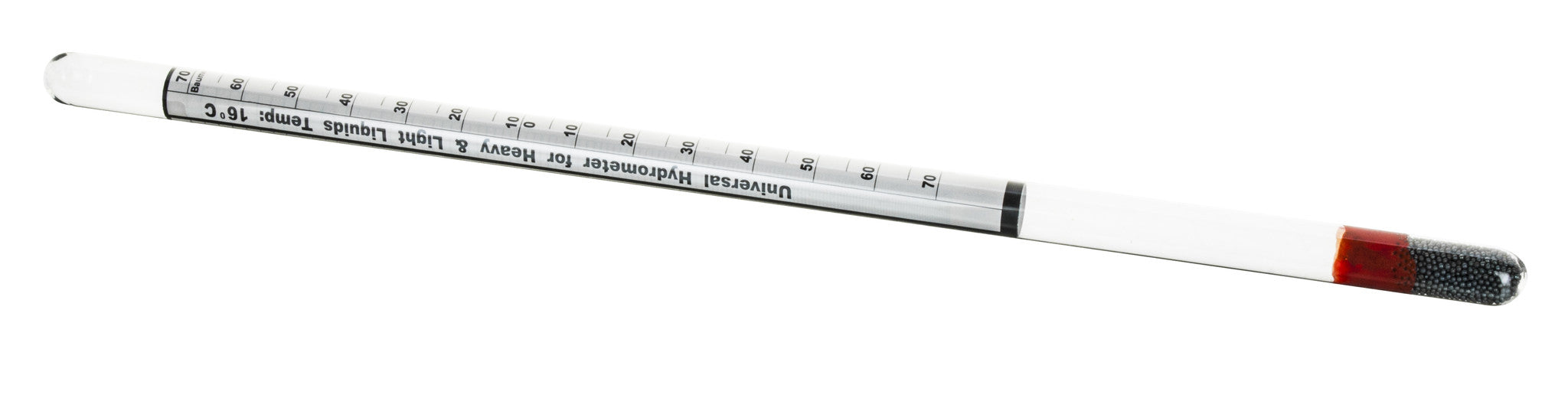 This product is suitable for both light and heavy liquids. It has an overall length of approximately 370mm and features a shot-loaded range for specific gravity measurement, spanning from 0.700 to 2.000 with subdivisions of 0.01.