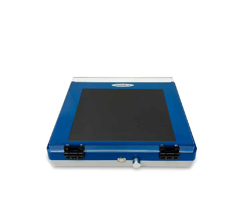 Here is the corrected text: The VWR UV transilluminator offers high-performance gel viewing in a modern, compact housing. It features a large, scratch-resistant viewing surface that is evenly illuminated by four high-powered 14 W UV tubes. The UV intensity is fully adjustable using the control knob. The long-lasting filter glass ensures a 302 nm mid-range output ideal for gels stained with ethidium bromide, SYBR green, and red stains. Models are available with either 115 or 230 V input. Key features: • Hinged, UV-blocking safety cover • Scratch-resistant viewing surface • Adjustable UV intensity Dimensions: 21 × 26 cm Available models: • Cat. No.: 77627-820, Electrical: 115 V • Cat. No.: 77627-822, Electrical: 230 V