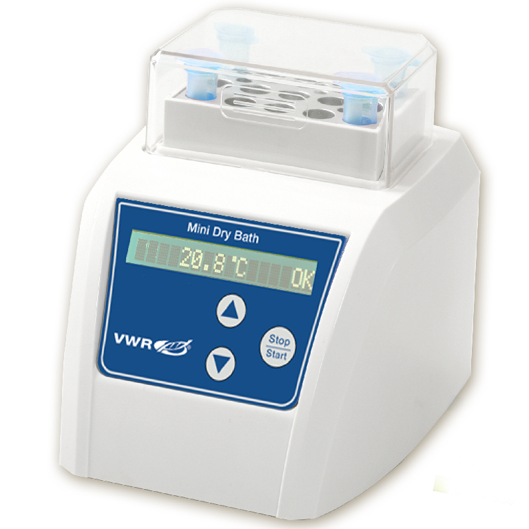Temperature range: RT 5...100 °C, VWR® mini dry bath block heater with digital temperature control up to 100 °C., The unit includes a hinged lid, improving temperature uniformity throughout tube samples. With a wide range of accessory blocks, the instrument is ideal for incubating tubes from 0.2 to 50 ml., 02_BulletPoint: Digital temperature control | Wide range of block accessories for all common tubes and plates | Extremely compact, only 4.6" wide | Temperature increment: 0.1 °C, 08_Certifications: CE marked., 10_Ordering: Heaters require a VWR® modular heating block for operation (sold separately)., Capacity: 15× 1.5/2.0 or 2× 50 ml, VWR® mini dry bath block heater, Cat. No.: 76549-942, W×D×H: 11.7×15×11.2 cm (4.6×5.9×4.4"), Electrical: 100/240 V, 50/60 Hz, 50 W, Temperature accuracy: ±0.5 °C, Final SAP Desc Link: 7009588, SAP Description Status: Ready, VWR® mini dry bath block heater with digital temperature control up to 100 °C., The unit includes a hinged lid, improving temperature uniformity throughout tube samples. With a wide range of accessory blocks, the instrument is ideal for incubating tubes from 0.2 to 50 ml., 02_BulletPoint: Digital temperature control | Wide range of block accessories for all common tubes and plates | Extremely compact, only 4.6" wide | Temperature increment: 0.1 °C, 08_Certifications: CE marked., 10_Ordering: Heaters require a VWR® modular heating block for operation (sold separately)., Final SAP Desc Link: 7009588, SAP Description Status: Ready