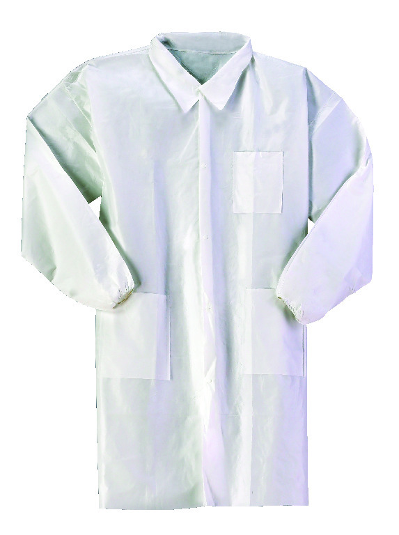 Lab coats are manufactured from a specially formulated breathable microporous fabric that is exceptionally clean and durable. These low-linting garments provide a fluid barrier and dry-particulate protection, as well as resistance to common laboratory chemicals. They are appropriate for industrial, pharmaceutical, food processing, construction, and certain environmental cleanup applications. The lab coats feature a tapered collar, snap front, inset sleeves, elastic cuffs, and three pockets with serged seams. Lab coats are rigorously tested and manufactured under stringent process controls to ensure that each garment meets exacting quality standards and performs to specification. They are lot controlled and validated through independent lab testing. Key features include: * Significant fluid and particulate barrier * Durable lightweight fabric * Excellent breathability and water vapor transmission rate * Soft tactile feel Certifications and specifications: * Manufactured in an ISO certified facility * Color: White * Particle shedding (Helmke Drum): Level II * Bacterial Filtration Efficiency: 0.999 * H₂O Vapor Transmission Rate (avg.): 777 g/m²/24 hrs. * H₂O Resistance: Pass * Weight: 56 g/m² Available in sizes S, M, L, XL, XXL, and 3XL.
