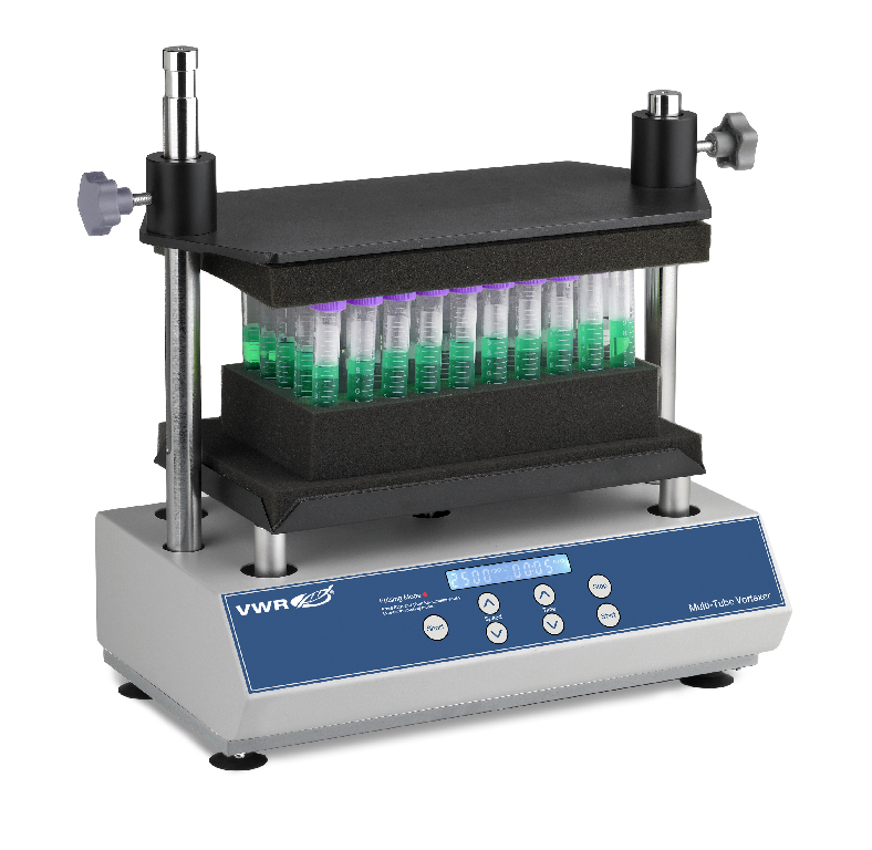 The VWR® multitube vortex mixer allows hands-free, high capacity vortexing., 02_BulletPoint: Powerful motor drive for high throughput vortex mixing | Wide range of accessories for all common tube sizes and plates | Pulse function for intermittent mixing, 08_Certifications: CE marked, The VWR® multitube vortex mixer allows hands-free, high capacity vortexing., 02_BulletPoint: Powerful motor drive for high throughput vortex mixing | Wide range of accessories for all common tube sizes and plates | Pulse function for intermittent mixing, 08_Certifications: CE marked, VWR® multi-tube vortexer, Dimensions: 38.1W×23.4D×41.9H cm (15×9.2×16.5"), Cat. No.: 76549-930, Electrical: 100/240 V, 50/60 Hz, 60 W, Speed range: 500 - 2500 rpm, Orbit: 3.6 mm, Platform Size: 30.5×17.8 cm (12×7"), Timer: 1 min - 99 h 59 mi