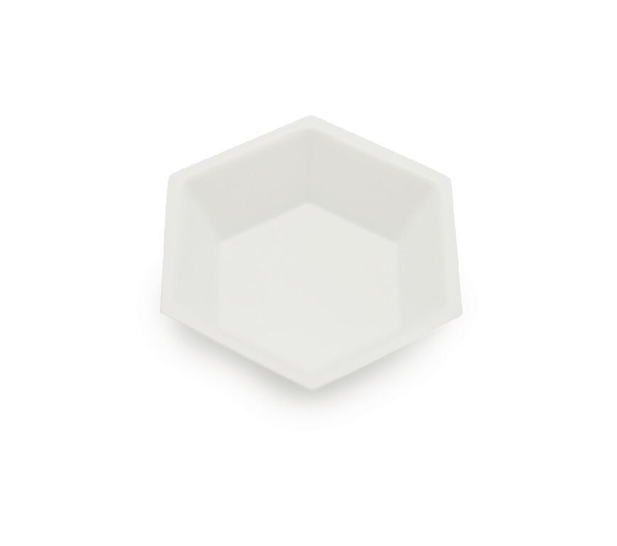 Here is the corrected text: These hexagonal weighing boats are flexible and feature smooth surfaces to provide accurate pour-outs with minimal sample loss. They are ideal for applications where there is concern about cross-contamination and cleanliness is a necessity, such as life science research, food, bio-pharmaceutical, environmental, and molecular research environments. • Electron beam sterilized to reduce the risk of cross-contamination and compromised samples • Made from 100% virgin anti-static polystyrene that is waterproof and reduces the chance of materials sticking to the units • Disposable • Flat bottoms and sloping sides provide accurate transfer • Can be used with microwave moisture analyzers • Biologically inert and resistant to dilute and weak acids, aqueous solutions, alcohols, and bases • Color: White • FDA/food-grade compliant Available in two sizes: Medium: Capacity: 46 ml Color: White Material: PS, anti-static Size: Medium Cat. No.: 76540-494 Dimensions: 64×51×20 mm (2.52×2.01×0.79") Small: Capacity: 6 ml Color: White Material: PS, anti-static Size: Small Cat. No.: 76540-492 Dimensions: 38×25×9 mm (1.50×0.98×0.35")