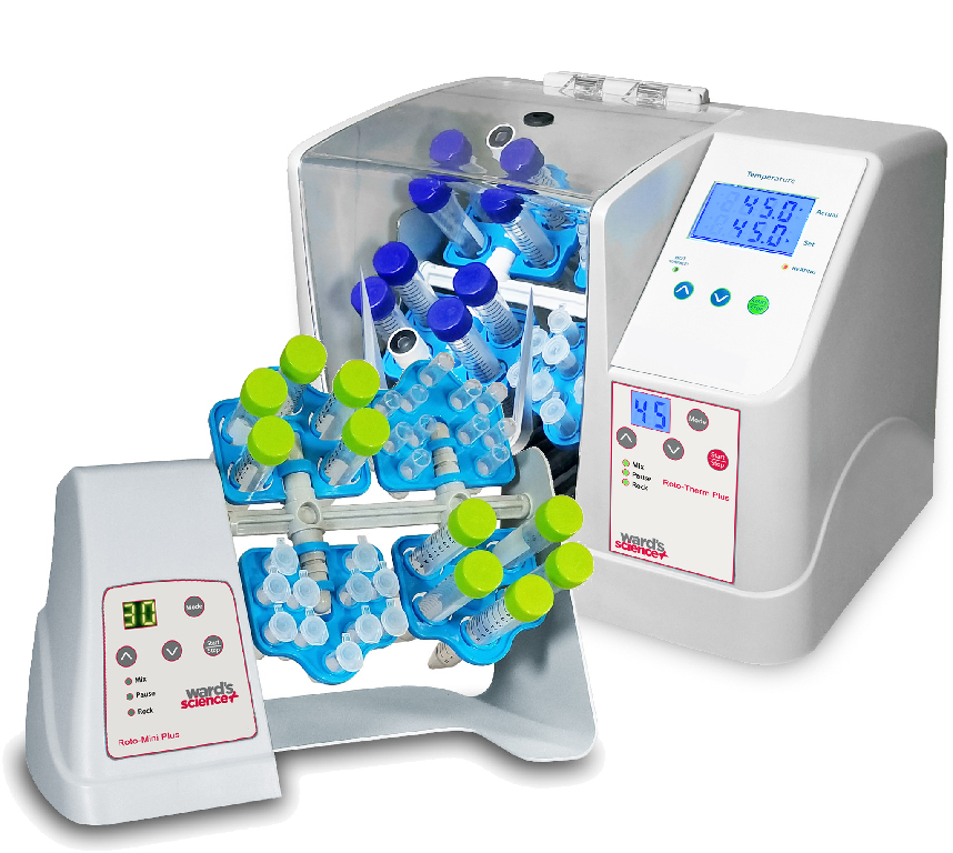 Temperature range: Ambient fixed, Suitable for an array of laboratory applications including resuspension, protein binding, nucleic acid purification, histochemistry and hybridization., All mixers include interchangeable tube holders for accommodating all common tube sizes from 0.5 to 50 ml. Motion on all units can be adjusted from vertical (end over end) mixing, to horizontal (rolling or hybridization style) mixing., 04_BodyText: The 'PLUS' units have the following additional functions: 'Mix' function: Rotating in combination with oscillations (increased mixing); 'Pause' function: Rotating with intermittent 'stops' during rotation; and 'Rock' function: Back and forth, gentle rocking motion (see-saw)., 02_BulletPoint: Includes tube holders for common tube sizes | Several motion and incubation capacities available | Two-year warranty, Roto-Mini PLUS - R2024, Cat. No.: 470313-912, Electrical: 115 V, Speed range: 5 - 70 rpm, Temperature range: Ambient 5...60 °C, Suitable for an array of laboratory applications including resuspension, protein binding, nucleic acid purification, histochemistry and hybridization., All mixers include interchangeable tube holders for accommodating all common tube sizes from 0.5 to 50 ml. Motion on all units can be adjusted from vertical (end over end) mixing, to horizontal (rolling or hybridization style) mixing., 04_BodyText: The 'PLUS' units have the following additional functions: 'Mix' function: Rotating in combination with oscillations (increased mixing); 'Pause' function: Rotating with intermittent 'stops' during rotation; and 'Rock' function: Back and forth, gentle rocking motion (see-saw)., 02_BulletPoint: Includes tube holders for common tube sizes | Several motion and incubation capacities available | Two-year warranty, Roto-Therm - H2020, Cat. No.: 470313-914, Electrical: 115 V, Speed range: 24 rpm fixed, Temperature range: Ambient fixed, Suitable for an array of laboratory applications including resuspension, protein binding, nucleic acid purification, histochemistry and hybridization., All mixers include interchangeable tube holders for accommodating all common tube sizes from 0.5 to 50 ml. Motion on all units can be adjusted from vertical (end over end) mixing, to horizontal (rolling or hybridization style) mixing., 04_BodyText: The 'PLUS' units have the following additional functions: 'Mix' function: Rotating in combination with oscillations (increased mixing); 'Pause' function: Rotating with intermittent 'stops' during rotation; and 'Rock' function: Back and forth, gentle rocking motion (see-saw)., 02_BulletPoint: Includes tube holders for common tube sizes | Several motion and incubation capacities available | Two-year warranty, Roto-Mini - R2020, Cat. No.: 470313-910, Electrical: 115 V, Speed range: 24 rpm fixed, Temperature range: Ambient 5...60 °C, Suitable for an array of laboratory applications including resuspension, protein binding, nucleic acid purification, histochemistry and hybridization., All mixers include interchangeable tube holders for accommodating all common tube sizes from 0.5 to 50 ml. Motion on all units can be adjusted from vertical (end over end) mixing, to horizontal (rolling or hybridization style) mixing., 04_BodyText: The 'PLUS' units have the following additional functions: 'Mix' function: Rotating in combination with oscillations (increased mixing); 'Pause' function: Rotating with intermittent 'stops' during rotation; and 'Rock' function: Back and forth, gentle rocking motion (see-saw)., 02_BulletPoint: Includes tube holders for common tube sizes | Several motion and incubation capacities available | Two-year warranty, Roto-Therm PLUS - H2024, Cat. No.: 470313-920, Electrical: 115 V, Speed range: 5 - 70 rpm, Suitable for an array of laboratory applications including resuspension, protein binding, nucleic acid purification, histochemistry and hybridization., All mixers include interchangeable tube holders for accommodating all common tube sizes from 0.5 to 50 ml. Motion on all units can be adjusted from vertical (end over end) mixing, to horizontal (rolling or hybridization style) mixing., 04_BodyText: The 'PLUS' units have the following additional functions: 'Mix' function: Rotating in combination with oscillations (increased mixing); 'Pause' function: Rotating with intermittent 'stops' during rotation; and 'Rock' function: Back and forth, gentle rocking motion (see-saw)., 02_BulletPoint: Includes tube holders for common tube sizes | Several motion and incubation capacities available | Two-year warranty